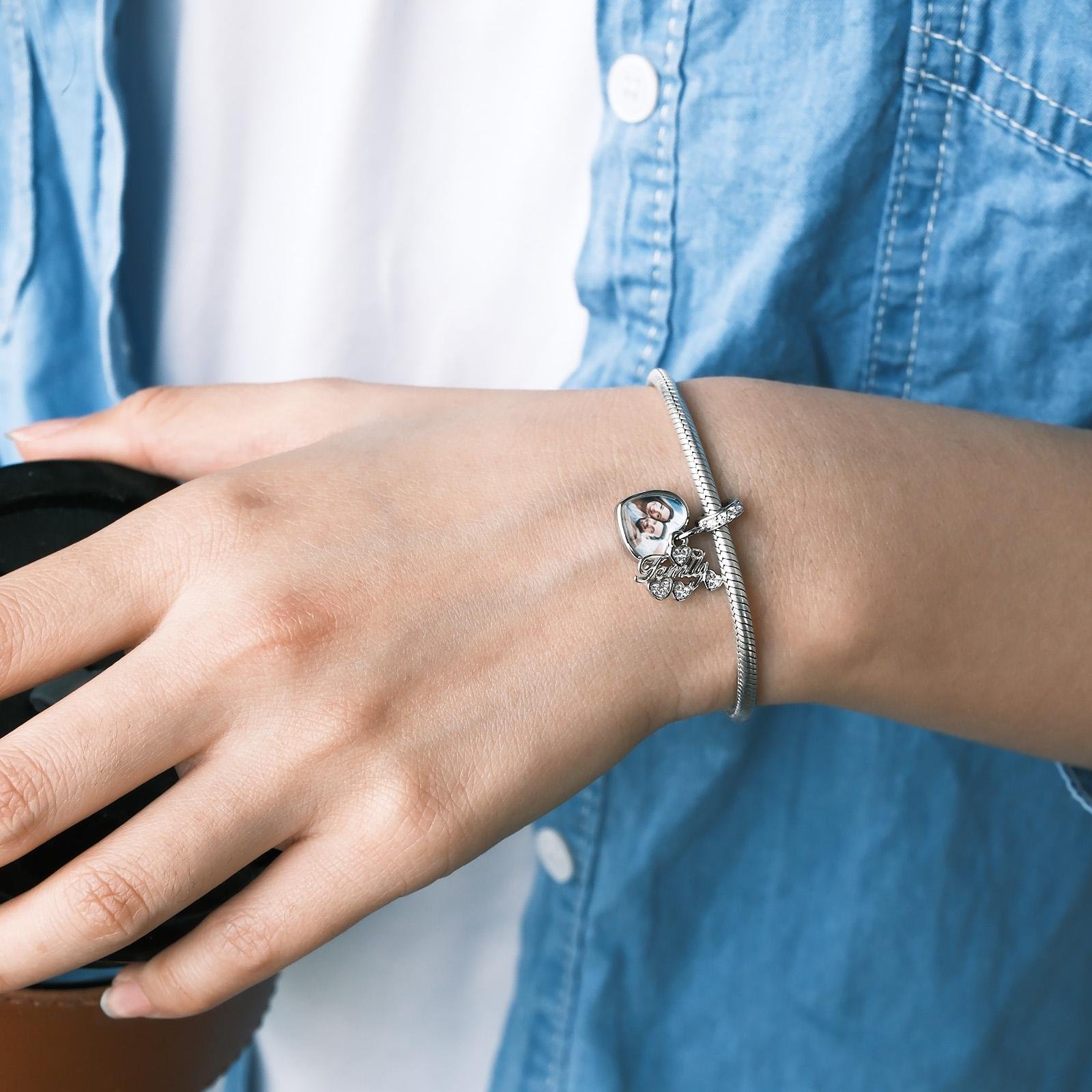 Celebrate your family with our custom photo charm delicate heart. This unique and thoughtful gift allows you to personalize it with a cherished photo. Crafted with love, this creative gift is perfect for birthdays, anniversaries, or any special occasion. Show your loved ones how much they mean to you with this personalized keepsake. Order yours today!