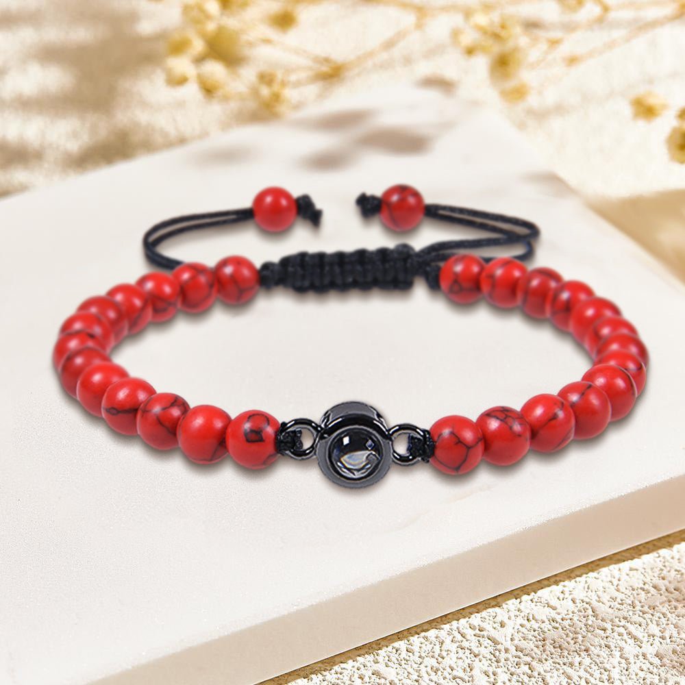 What sets our bracelet apart is the photo projection feature. Simply insert a small photo of your loved one into the pendant, and watch as it is beautifully projected onto any surface when light shines through.
