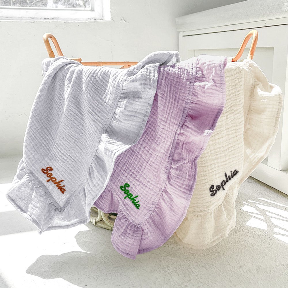 Personalized Baby Swaddle Blanket Custom Muslin Blanket with Embroidered Name Gift for Baby